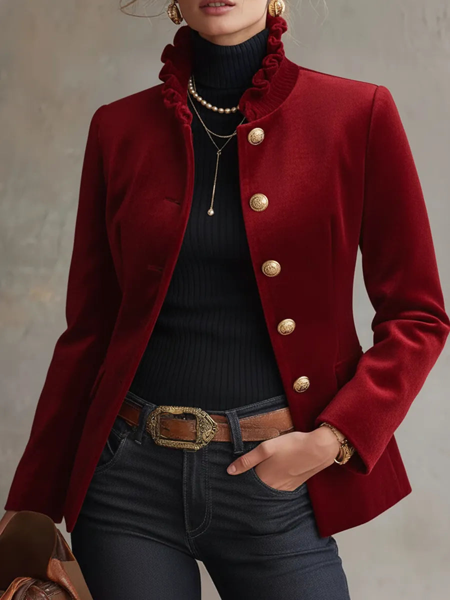 Damska kurtka vintage z aksamitu ze złotymi guzikami