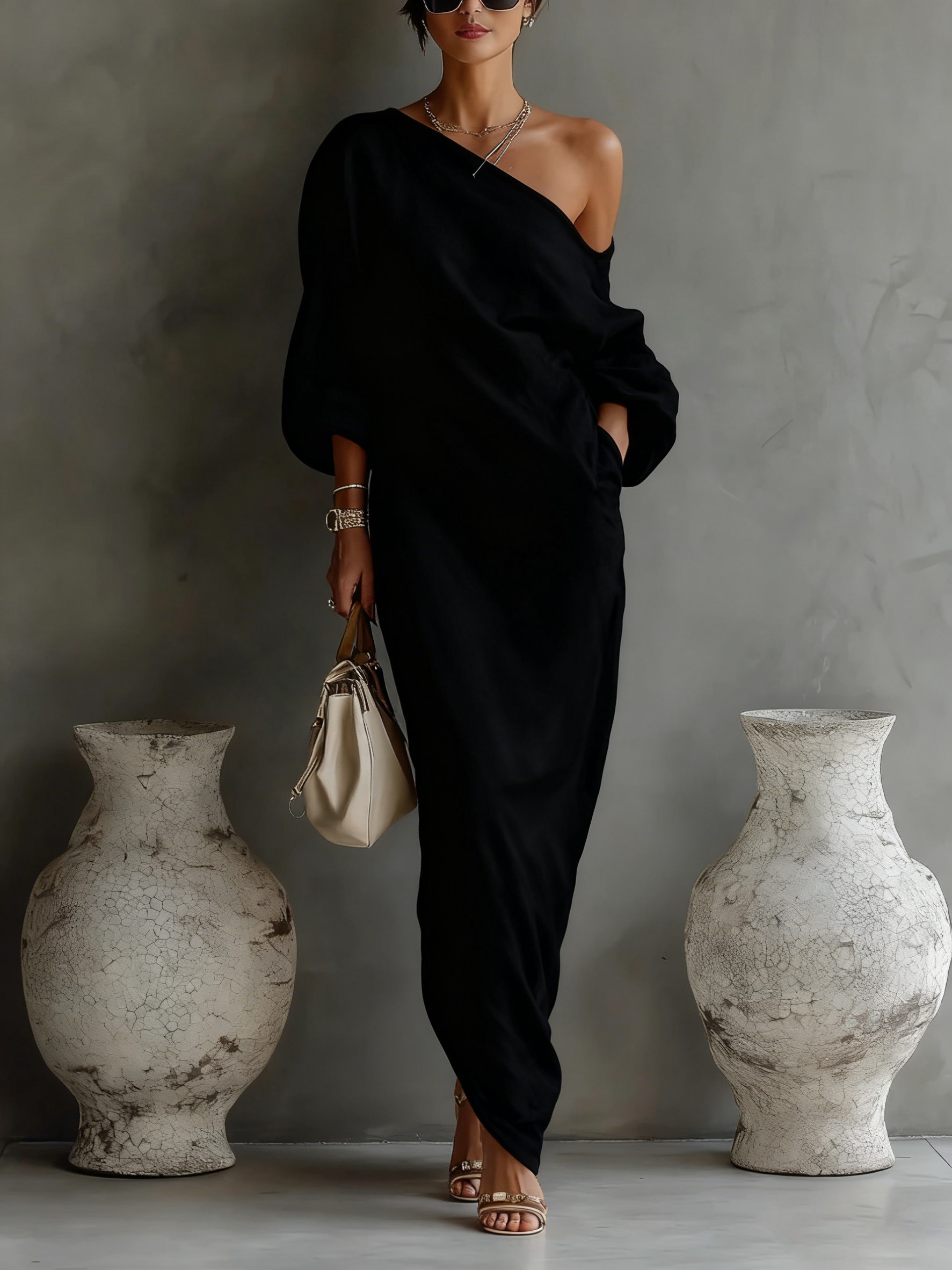 😊✨ Postaw na elegancję bez wysiłku dzięki zwiewnej sukience maxi na jedno ramię, która wygląda wyrafinowanie, nowocześnie i pięknie ponadczasowo.